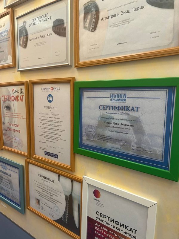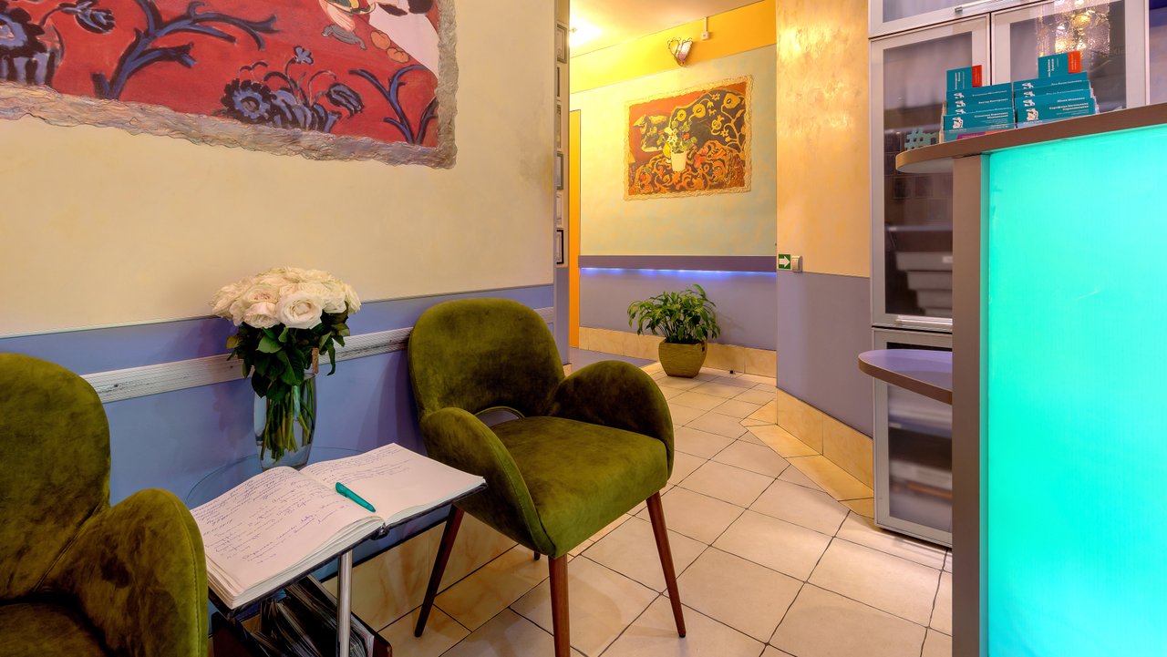 Я перешла в эту стоматологию, потому что мой врач по брекетам Сурен Оникович Назорян теперь работает здесь. Уже клеила брекеты, ставила новые дуги, делала чистку — всё прошло просто отлично. Особенно понравилась чистка: быстро, без дискомфорта, персонал очень вежливый и добрый, хорошо общается с клиентами. Сама клиника оставляет приятное впечатление: чисто и красивые картины на стенах. Даже в туалете идеальная чистота и есть одноразовые щётки — мелочь, но приятно. Кабинеты небольшие, но комфортные, видимо, для детей даже мультики включают, то есть обслуживание хорошее.